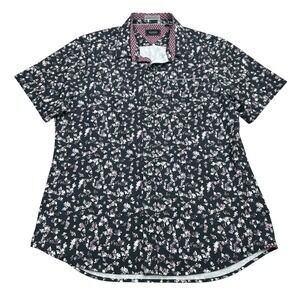 7 Diamonds Button Up Shirt Mens Size XL Black Floral Short Sleeve 4 Way Stretch