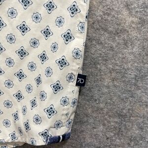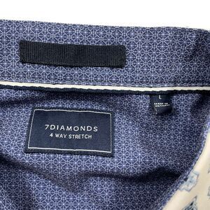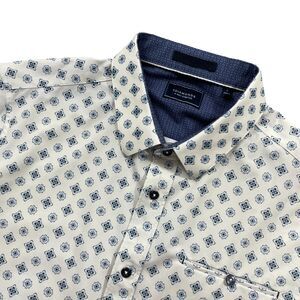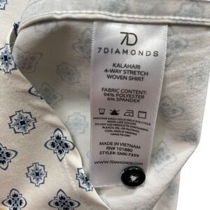 7 Diamonds Large 4 Way Stretch Short Sleeve Ivory Blue Pattern Button Up