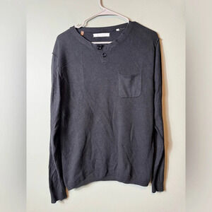 7 Diamonds‎ Men’s 2 Button Henley Black Sweater Size Large Pocket On Front