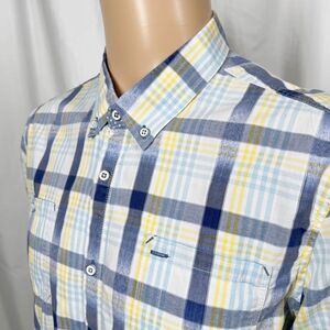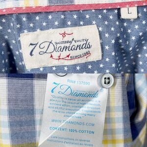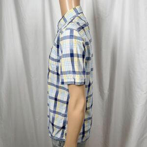 7 Diamonds Men's Large Blue Yellow Plaid Surf Rider Short Sleeve Button-Up Shirt