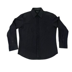 7 Diamonds Men’s Long Sleeved Button Up Collared Black Silver Shirt S XXXL