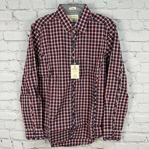 7 Diamonds Men's Love Is Eternal Button Up Shirt, Size Small, Red/Blue Plaid