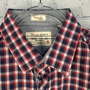7 Diamonds Original Well Sewn Men's Love Is Eternal Button Up Long Sleeve Shirt, Size Small, Red/Blue/White Color Combination Plaid, 100% Cotton