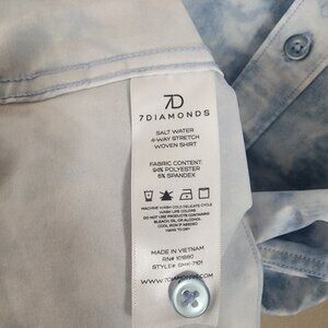 7 Diamonds Mens Salt Water Button Up Shirt Short Sleeve Woven Blue White Size M