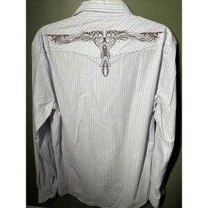 7 Diamonds Men’s Western Shirt Blue Brown Stripe Embroidered Back L/S