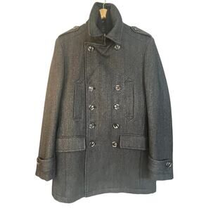 7 Diamonds Men's XL Herringbone Tweed Wool Blend Tweed Peacoat Heavy Quality