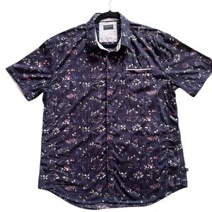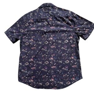 7 Diamonds Navy Floral Short Sleeve Button Up Shirt Size Large
