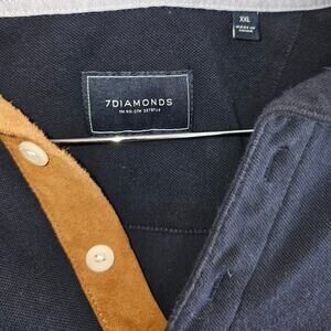 7 Diamonds Polo Shirt Mens Navy Blue Short Sleeve Shirt Y2K Size-XXL F-40