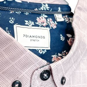 7 Diamonds Saga Stretch Pink Short Sleeve Button Down with Floral Accents Size L