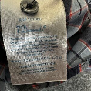 7 Diamonds Shirt Men Large Blue Plaid Long Sleeve Button Up Casual Pockets Adult