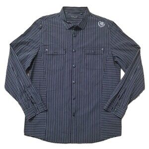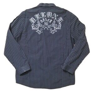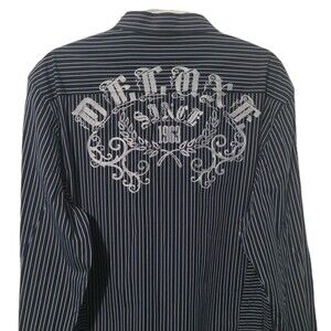 7 Diamonds Shirt Mens 2XL XXL Black Gray Striped Embroidered Deluxe Logo Shirt