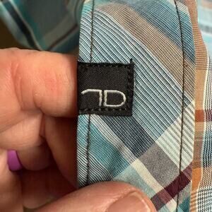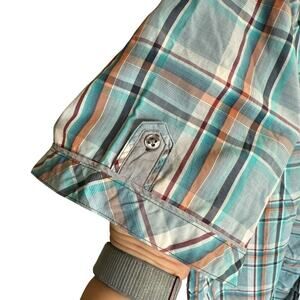 7 Diamonds Shirt Men's Button Up Plaid 2XL XXL Roll Tab Sleeves Green S/S Casual