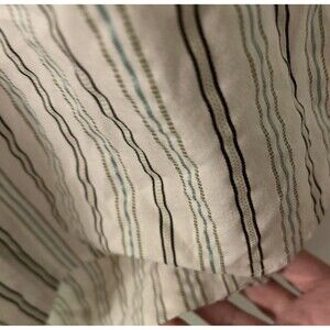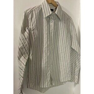Elevate your style with this 7 Diamonds Shirt for men in size L features a stylish blue, green, and white stripe pattern with a collared neckline and button closure. Sandro striped. Pattern feels great to the touch. Made from a cotton blend material, this lightweight and breathable button-up shirt is suitable for various occasions such as travel, parties, casual outings, workwear, and business meetings. The shirt's spread collar style and regular fit make it a versatile and eye-catching addition to any man's wardrobe, perfect for all seasons. Length 30 Sleeves 25 Arm to armpits 22. Great color scheme. Thank you for