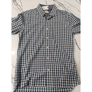 7 Diamonds Shirt Mens Small Blue White Black Plaid Button Up Long Sleeve New
