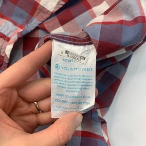 7 DIAMONDS SHIRT MENS XXL 2XL RED COTTON PLAID SHORT SLEEVE SNAP BUTTON WESTERN