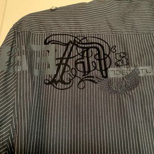 7 Diamonds White Stripes Black Cotton Button Up XL