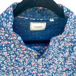 7 Diamonds Blue Short Sleeve Button Up Memories Live Floral Shirt Size XXL