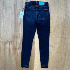 New 7 FOR ALL MANKIND B(AIR) THE ANKLE SKINNY JEANS WOMEN’S sz 25 Mid Rise Dark Wash Frayed Hem Stretch Denim