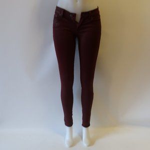 WOMENS 7 FOR ALL MANKIND BURGUNDY WAXY SKINNY JEANS SZ 25*