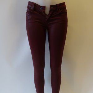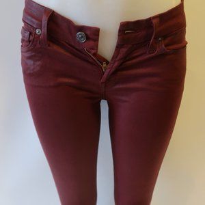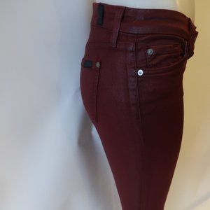 7 FOR ALL MANKIND BURGUNDY WAXY SKINNY JEANS 25