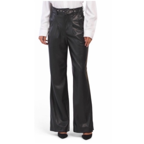 7 FOR ALL MANKIND Belted Faux Leather Wide Leg Pants in Brown