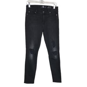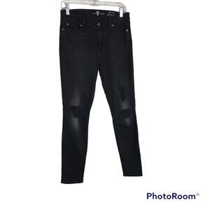 7 FOR ALL MANKIND Black Distressed Skinny Jeans Sz 26