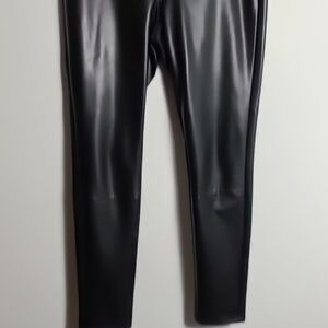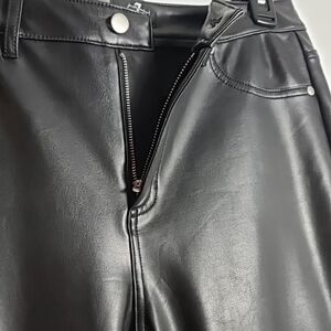 Sleek and stylish black faux leather jeans. Perfect for a bold, modern look.