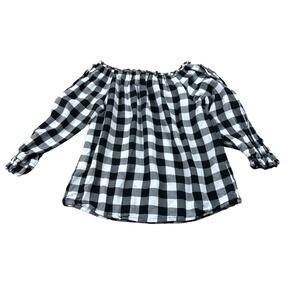 7 FOR ALL MANKIND Blouse Black White Checkered Plaid Top Girl's Size Large