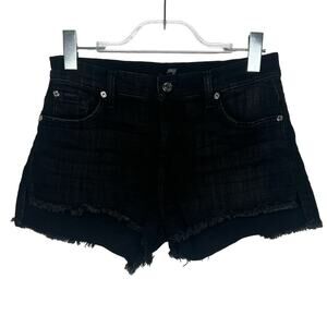 7 FOR ALL MANKIND Cut-Off Jean Shorts Mid Rise Frayed Hem Denim Black Size 24