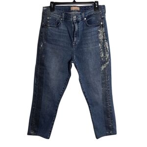 7 FOR ALL MANKIND Hi Rise Silver Foil Racing Stripe Jeans Ankle Skinny Size 31