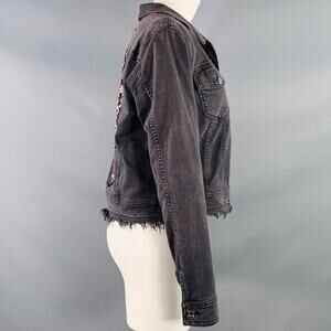 7 FOR ALL MANKIND M Grey Cotton Blend Denim Beaded Button Up Raw Edge Jacket