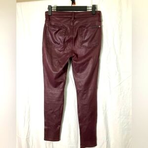 7 FOR ALL MANKIND MID RISE ANKLE SKINNY BURGUNDY JEATHER PANTS 25