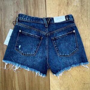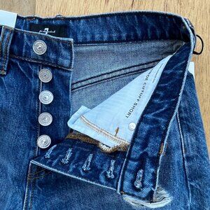 New 7 FOR ALL MANKIND MONROE CUTOFF SHORT WOMEN’S sz 24 Button Fly Destructed Frayed Hem Dark Wash
