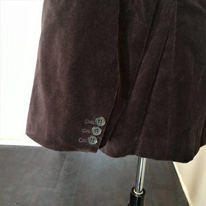 7 FOR ALL MANKIND Men’s Velvet Blazer in EXCEPTIONAL Condition! Looks as if it has never been worn Chocolate brown velvet 3-button blazer. 2 Interior pockets, one w/a "jewel" button. Contrast under collar velvet to match contrast stitching on front lapel. Tailoring "mishap" - faux button holes on 1 sleeve (see last pic). Pretty sure that guy lost his job, but nobody will ever know except you & me! :-) APPRX MEASURE (laid flat) 20" shoulder-2-shoulder 22" armpit-2-armpit 25" sleeve 31" length
