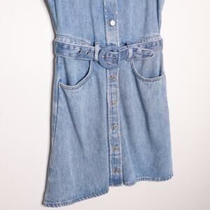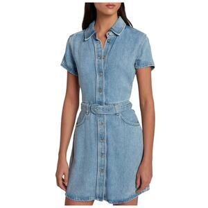 7 FOR ALL MANKIND NEW Denim Lustre Belted Mini Dress Volcano Blue Women's XS.