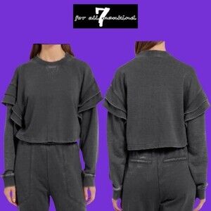 7 FOR ALL MANKIND NEW Skater Ruffled Drop Shoulders Crop Sweatshirt XS