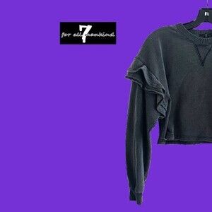 7 FOR ALL MANKIND |NEW| Skater Ruffled Drop Shoulders Cropped Sweatshirt XS. Cozy up to the season with a feminine sweatshirt update that is Individually dyed for a one-of-a-kind look. This flirty ruffled shoulder sweatshirt has a touch of elegance and is a wear anywhere investment. See pics for details and the measurements provided below/the Table Chart in the pics to size this sweatshirt.
