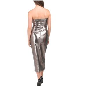 7 FOR ALL MANKIND Sexy Metallic Bustier Midi Faux Leather Strapless Party Dress