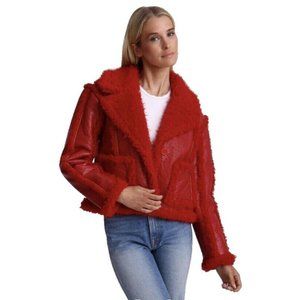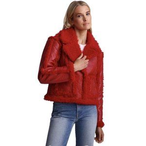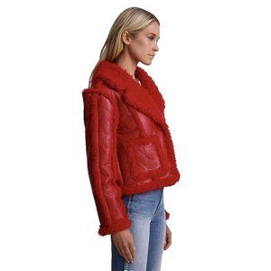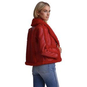 7 FOR ALL MANKIND Stella Red Vegan Leather Faux Shearling Cropped Jacket XS- NWT