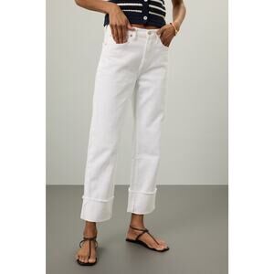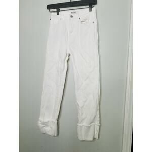 7 FOR ALL MANKIND White Cotton Blend Cuffed Hems Logan Straight Leg Jeans 25