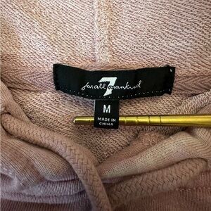 7 FOR ALL MANKIND Women’s Crop Hoodie, Distressed Pink, size Medium.
