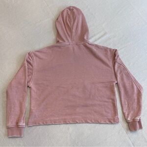 7 FOR ALL MANKIND Women’s Crop Hoodie, Distressed Pink, size Medium.