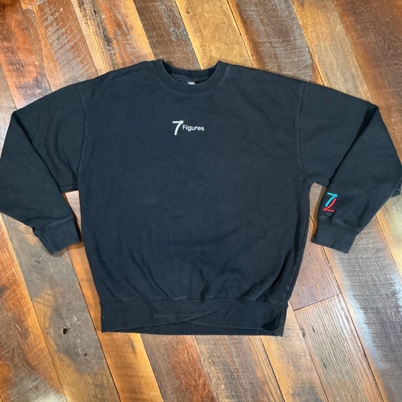 7 Figures Black Embroidered Logo Sweatshirt Size Large