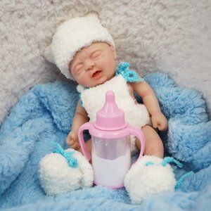 【Features】This is a mini reborn baby doll, anatomically correct girl. Size: 7 inch from head to toe, weighs 4 OZs, palm-sized, mini and portable; Eyes: acrylic eyes, can't blink; Washable, easy to care and maintain.