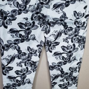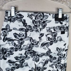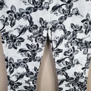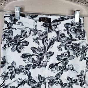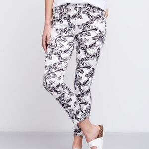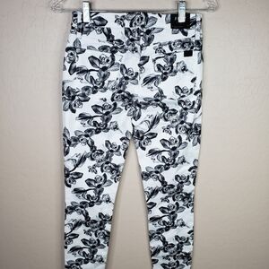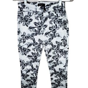 7 For All Man Kind Jen 7 White With Black Flowers Cropped Skinny Jean Sz 2