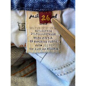 7 For All Man Kind Y2K Cropped Jeans Womens 26 Embroidered Pockets Raw Hem Boho