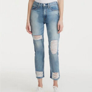 7 For All Mankind 50/50 Ripped High Waist Ankle Straight Leg Jeans. Sz: 28