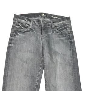 7 For All Mankind 7FAM Straight Leg Low Rise Jeans Frayed Hem Washed Black 24