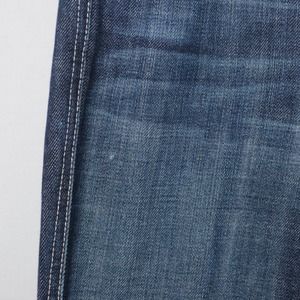 98% Cotton, 2% Spandex, Made in USA, Mid Rise, Zip Closure with Button at Top, Front & Back Pockets, Belt Loops, Fairly Firm Fabric - not much Stretch