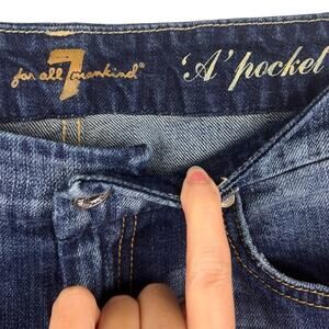7 For All Mankind “A” Pocket Low-Rise Bootcut Jeans 26 Distressed Dark Wash